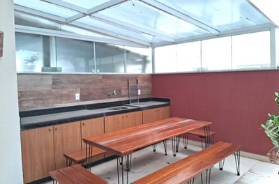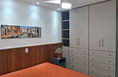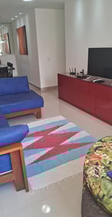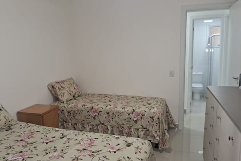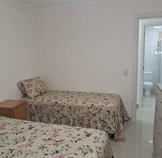 Apartamento de frente, todo equipado com 140m2 de área com 3 quartos, sendo uma suíte com cama Queen, todos com ar-condicionado e ventiladores de teto, sala de jantar com grande mesa, sala de estar com muito conforto, com ventilador de teto e ampla vista para as montanhas. Tem um cantinho com mesinha, cadeiras e frigobar para você relaxar. Cozinha completa com geladeira duplex, fogão de 5 bocas com forno, airfryer, micro-ondas, panela de arroz elétrica e outras facilidades. Para seu conforto conta com uma grande área externa com mesa para 10 lugares e uma churrasqueira a carvão. Tem uma lavadora de roupa para facilitar sua estadia. Tem internet de grande velocidade de 500Gb, TV de 43 polegadas na sala, com SKY completa e TV de 32 polegadas na suíte. Além do banheiro da suíte temos outro banheiro completo com ducha moderna com muita água.